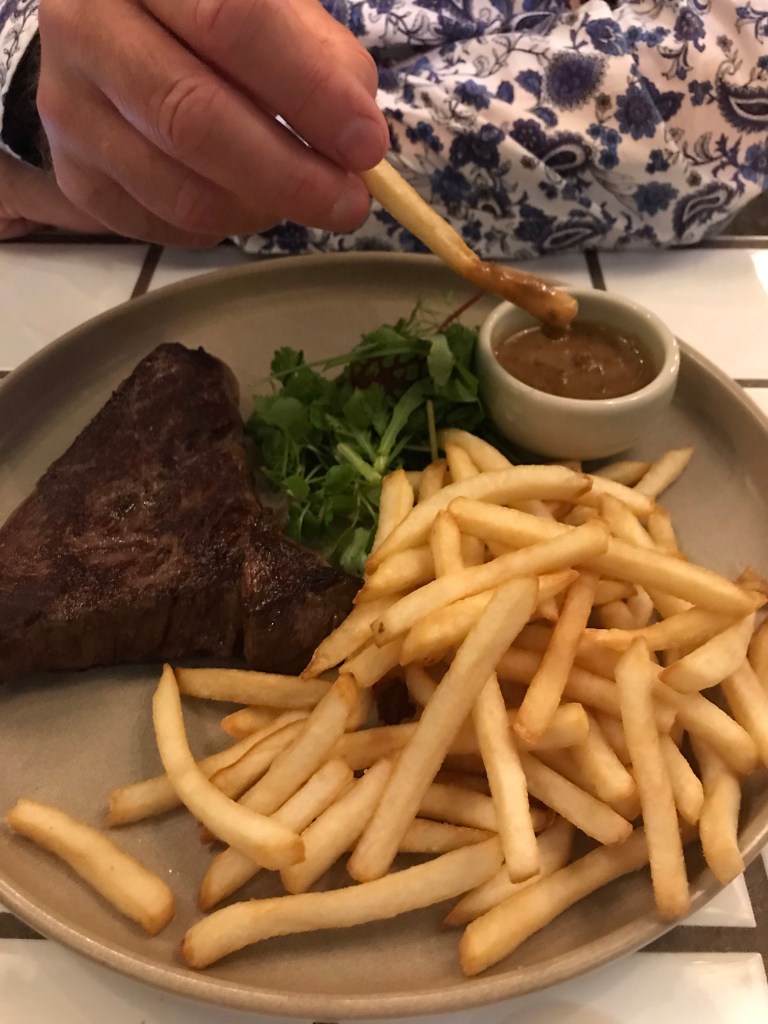 As for the rest of the weekend, it was lovely and relaxed – a walk with a friend, date night with DD with delicious crab pasta for me and steak for him (I stole lots of his chips), and a gorgeous swim at Avalon Beach on Sunday.