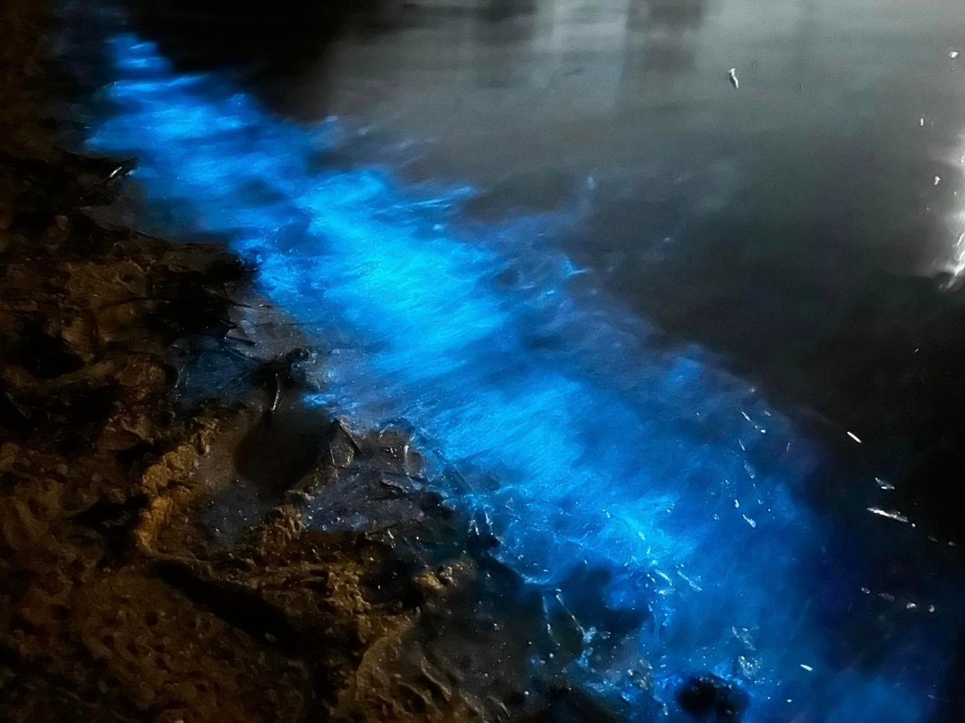 These natural events see the water glow vibrant blue due to the presence of microscopic bioluminescent algae known as Noctiluca.