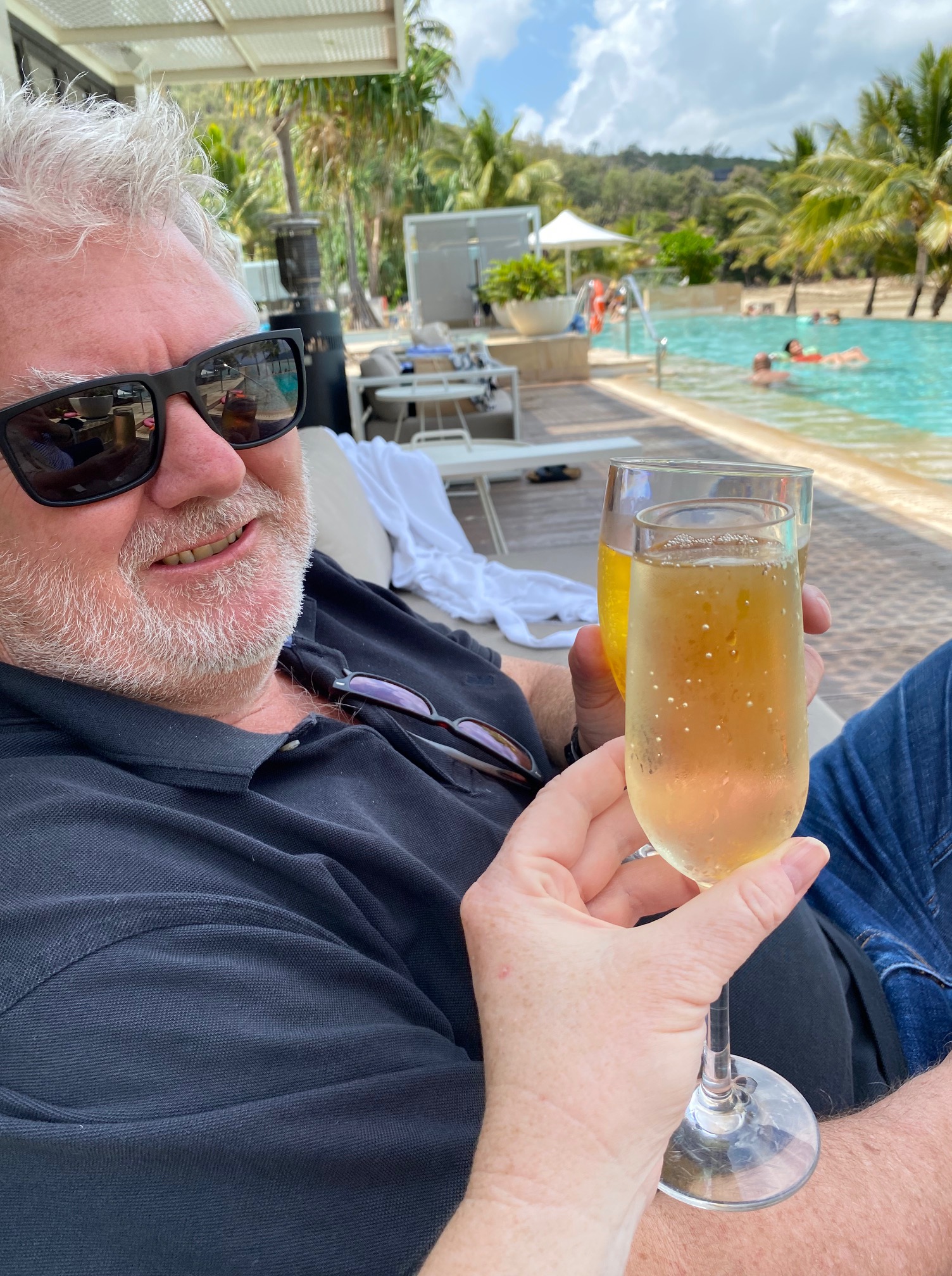 Back on dry land, I settled into a sun lounge to admire the view one last time. Then DD appeared with complimentary drinks vouchers and I sipped one last glass of bubbles by the pool before we made our way to the launch for our transfer to the airport.