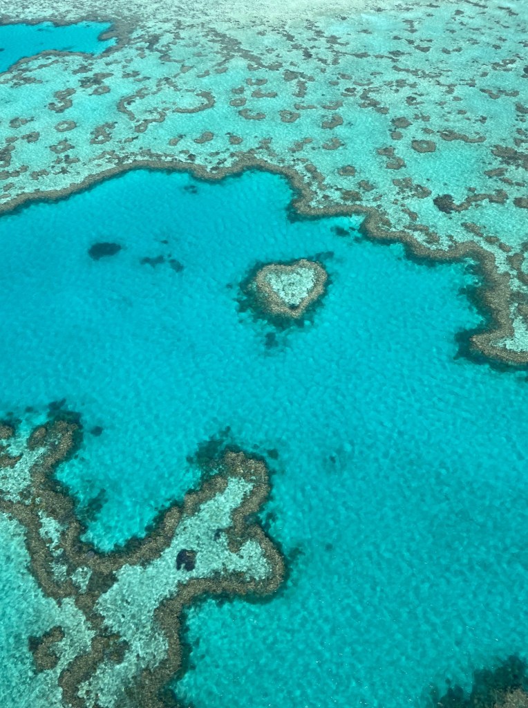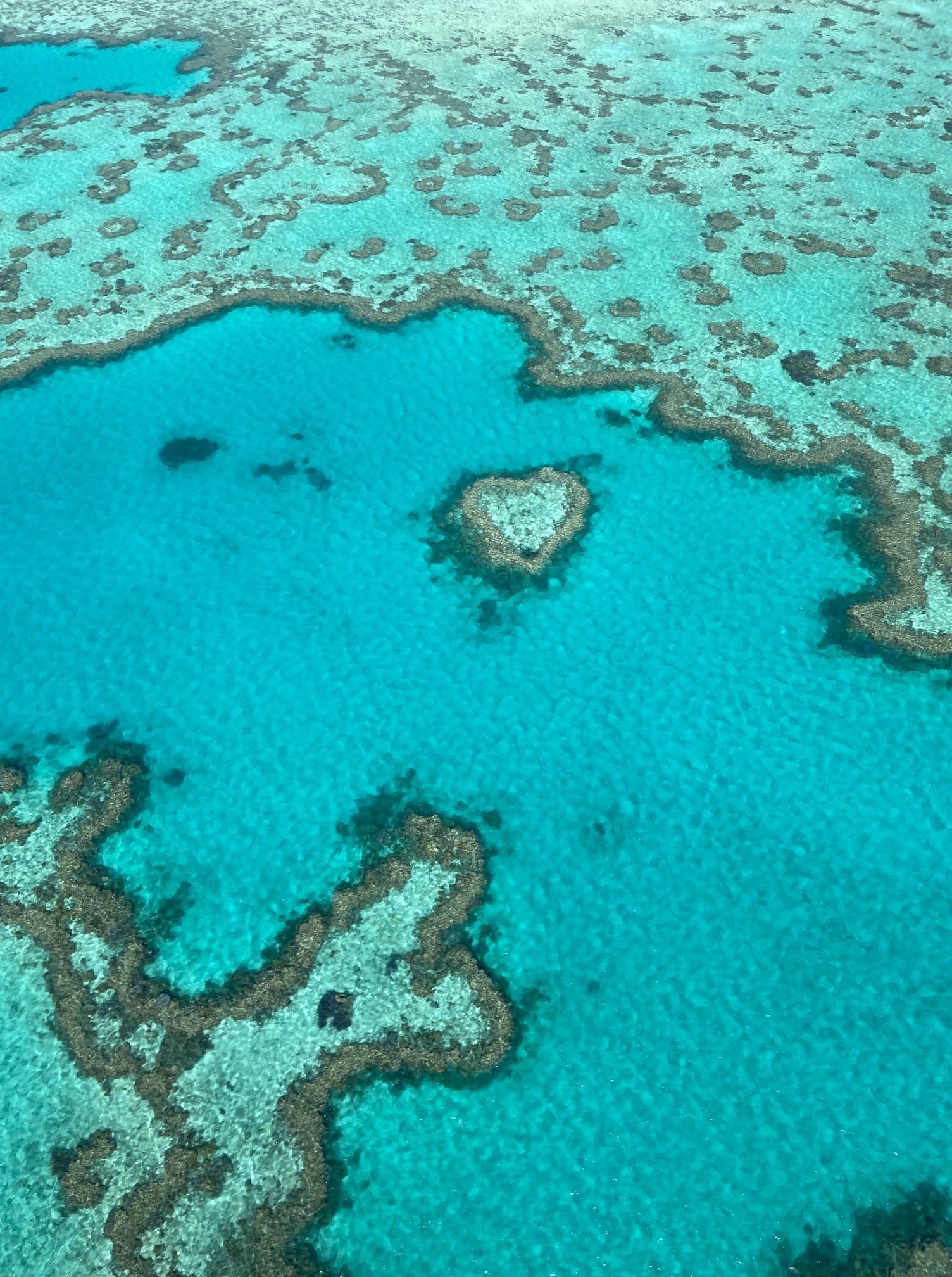 Then we flew to Heart Reef and circled it twice, where I took the photo below, which I reckon looks exactly like something out of a travel brochure. I swear not a single bit of photoshopping has taken place – this was the exact view from the window in the helicopter.