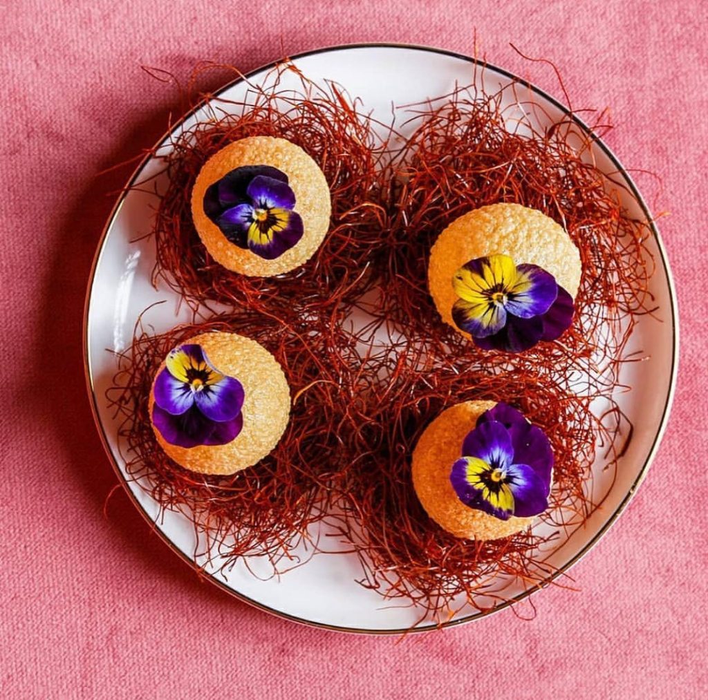 The Balls of Happiness were a flavour explosion: known in India as golgappa or panipuri, you put the entire crispbread ball in your mouth, bite it and explodes with a liquid mix of mint, tamarind, coriander and yoghurt.
