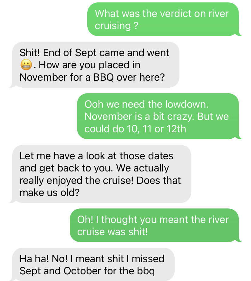 I suddenly remembered a friend with similar levels of cynicism as me had been on a river cruise recently and sent her a text asking how it was.