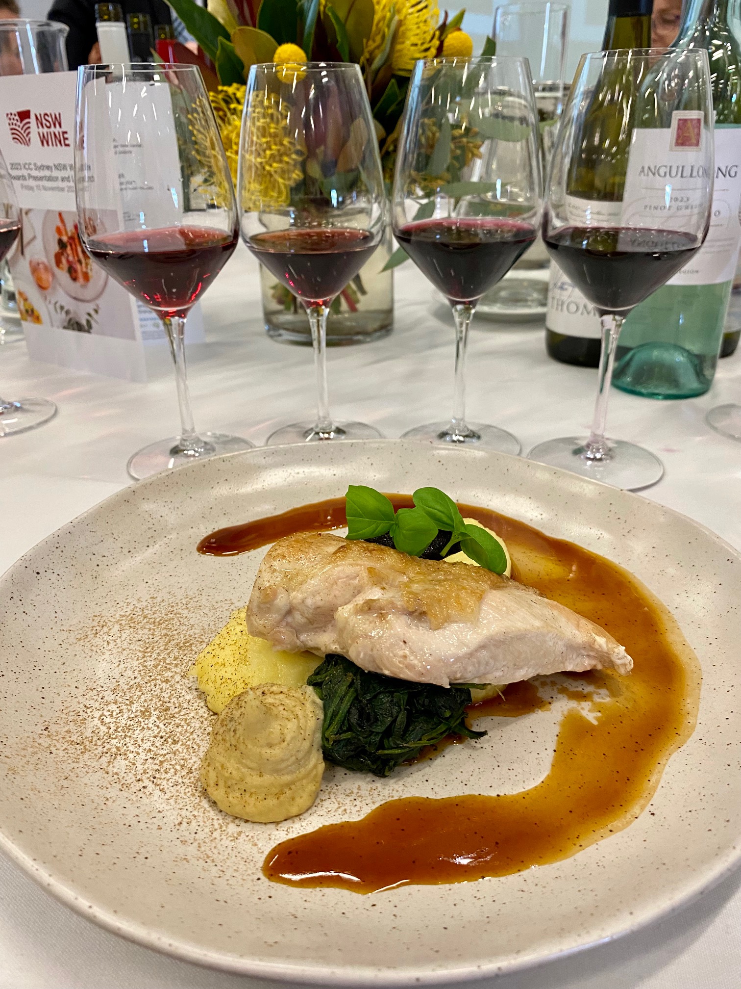 While I didn’t get to try it, damn, there were lots of other delicious wines delivered to my table and I consoled myself with a Gold medal winning Brokenwood Chardonnay while I ate fabulous food. ICC Sydney has really nailed its catering.