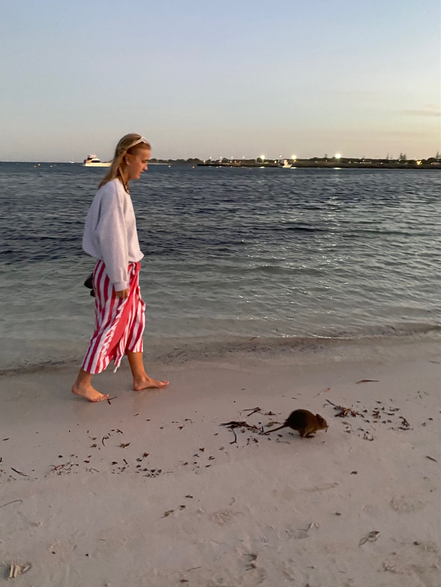 After sunset, we wandered back to the resort along the beach and a baby quokka joined the youngest for stroll. So cute! Then we shared a prawn pizza at the pub for dinner.