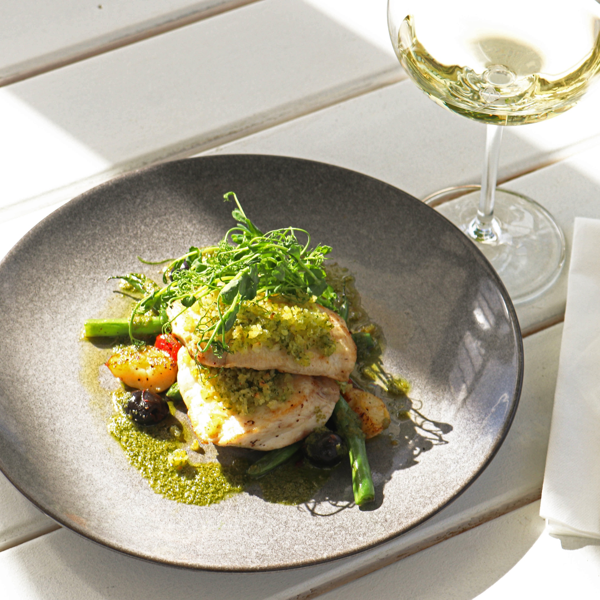 We decided on Batch Winery, situated on one of the highest peaks of Waiheke Island. We settled into a table with the most spectacular view while we ate oysters with cheese and leeks, lamb ribs with smoked eggplant puree, seared fish with macadamia, dried tomato and olives and a pear and walnut salad. Oh, and a couple of glasses of wine!