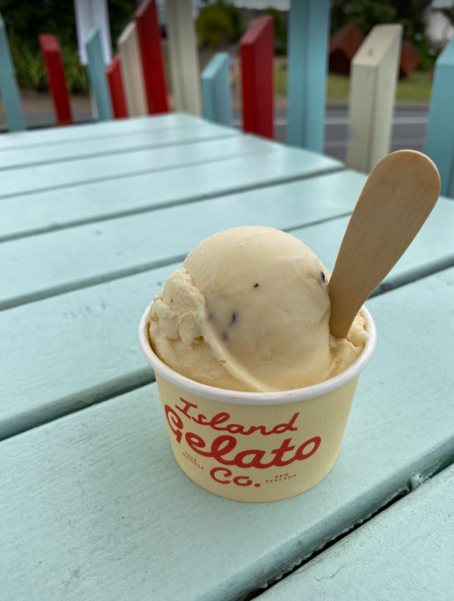 My blood was anything but cold by the time I climbed back up those 500 stairs, so DD hastily hailed a cab and took me to the local gelato shop in Oneroa for a soothing scoop of honeycomb flavoured goodness.