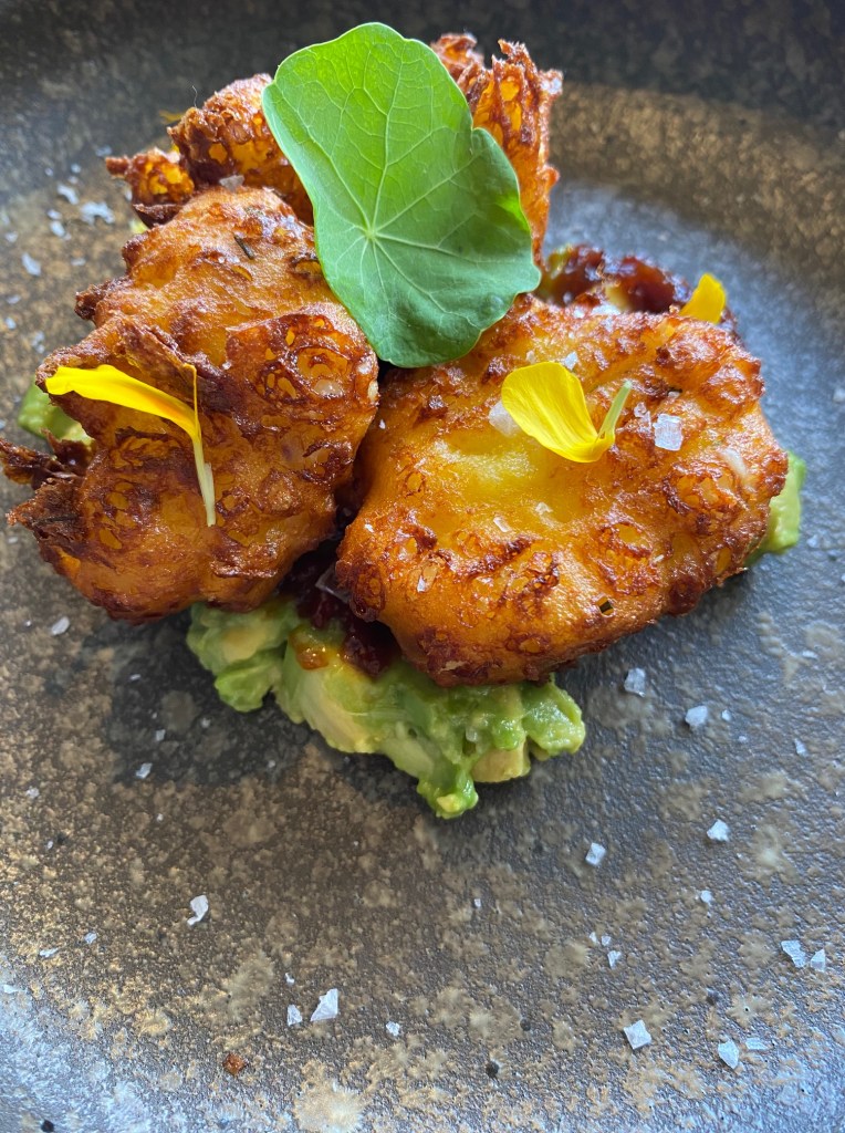 I was knackered the next morning, but perked up over a Restaurant Botanica brekkie of corn and cheddar fritters with smashed avo.