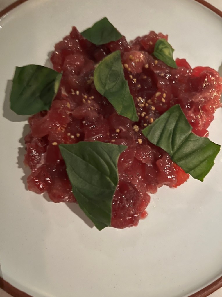 Then we moved on to Soluna, a relaxed, LA-inspired venue that serves snacks including pressed prawn toast, herbed falafel with cream cheese and chili, and yellowfin tuna with slightly dried tomato, burrata and basil scooped up with a thick slice of toasted bread.