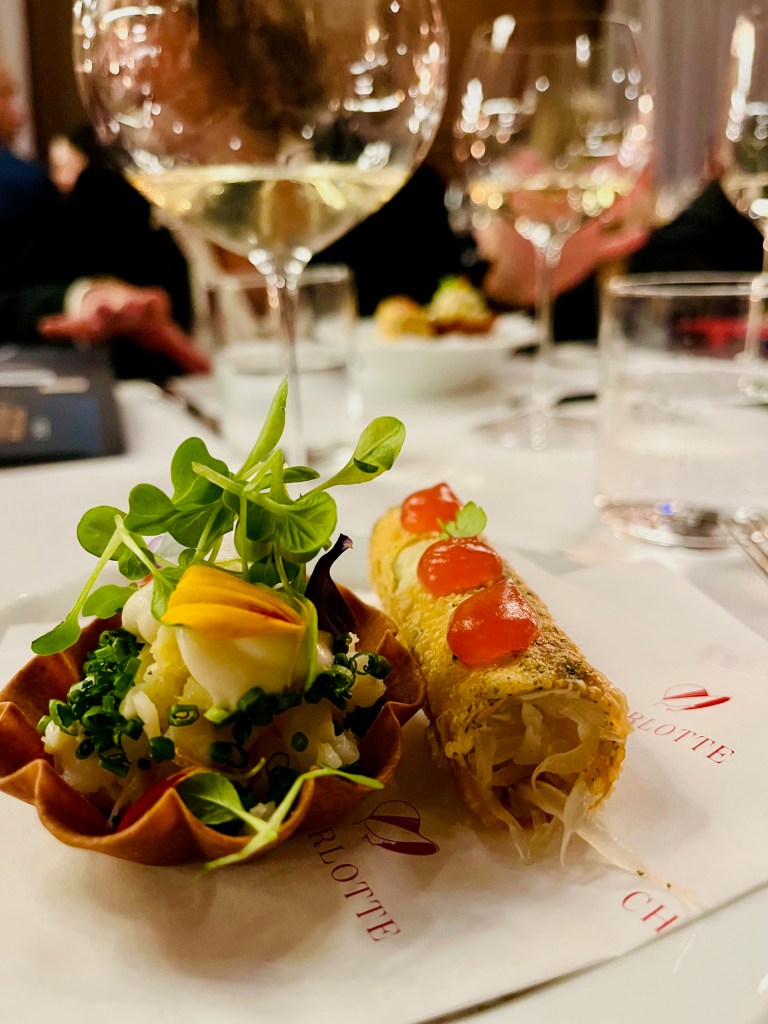 The food was incredible – smoked trout cannoli, spanner crab tartlet, steak tartare, lamb cutlets with potato rosti and superb cheeses for dessert with a giant macaron to take home at the end.