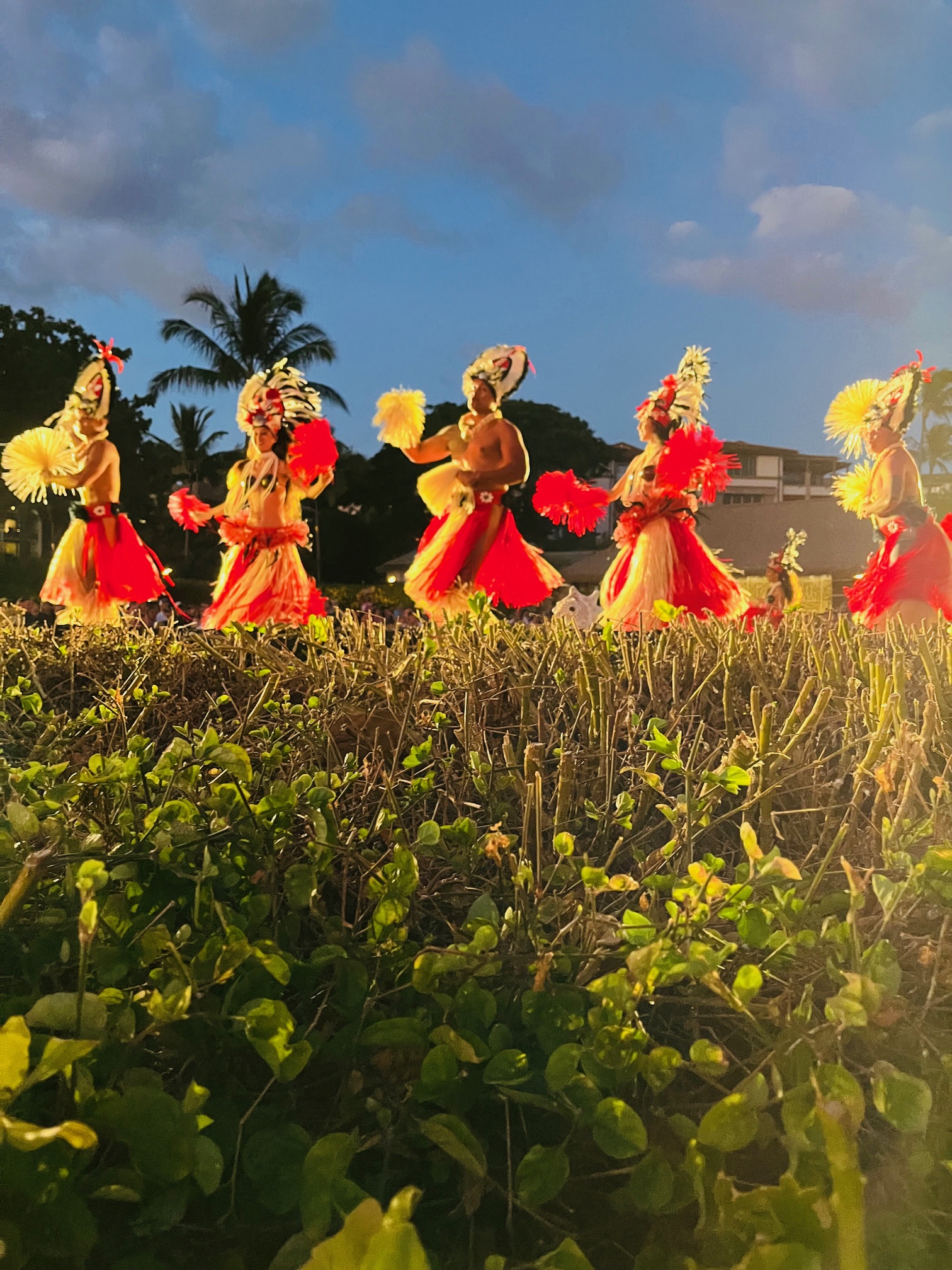 After happy hour we settled on the grass to watch the spectacular Maui sunsets, as luaus unfolded behind us at the resorts.