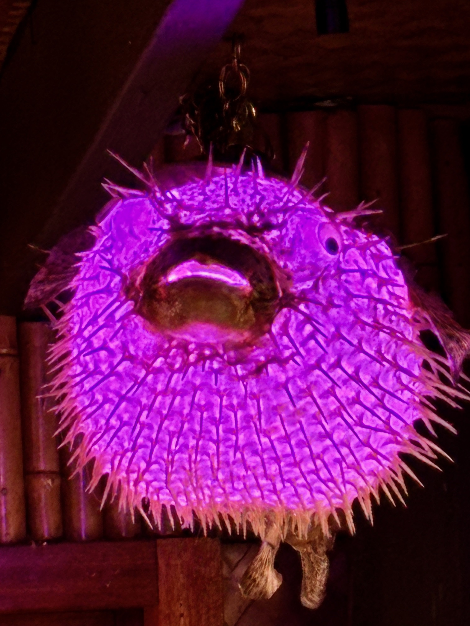 The venue is decorated with glass balls, puffer fish lights, fishing nets, huge shell-covered lamps, tiki statues and rattan chairs with koa wood tables. I was completely dazzled.