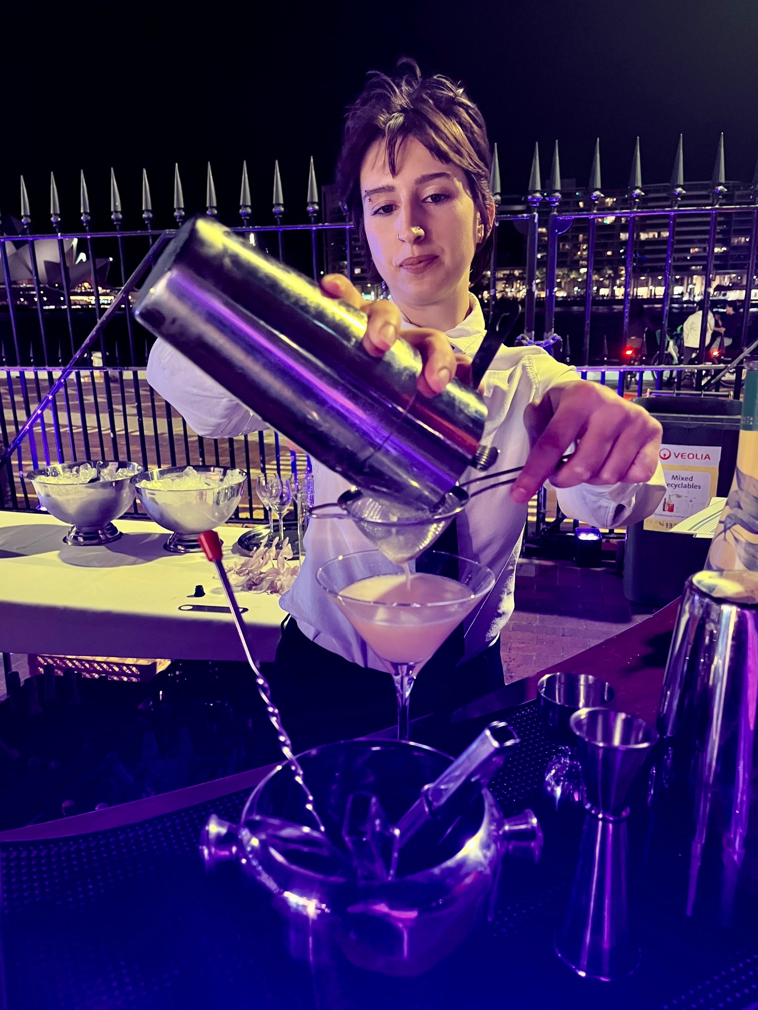 It was climate-change balmy in Sydney last night and the event was al fresco in the forecourt of the Overseas Passenger Terminal, with long tables festooned with orchids laid out beside the harbour, surrounded by the bright city lights.