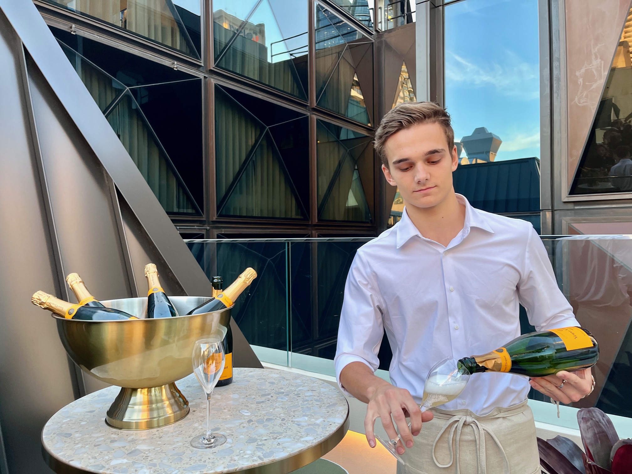 We sipped Veuve Clicquot on arrival at Rooftop Kouzina, which was a glorious spot on aclimate-change balmy Thursday evening.
