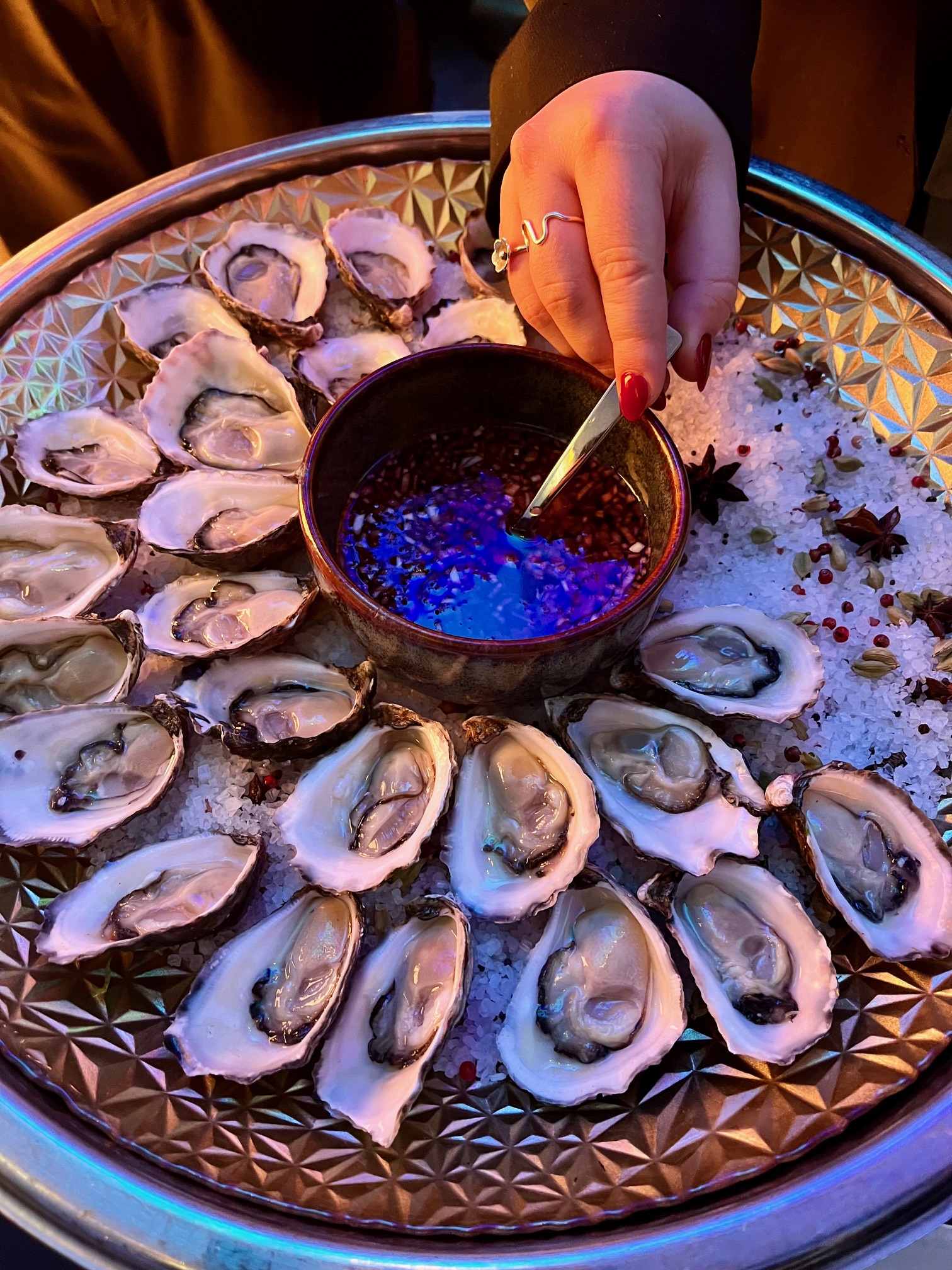 The cocktails were paired with the most delicious sashimi, scallops and oysters.