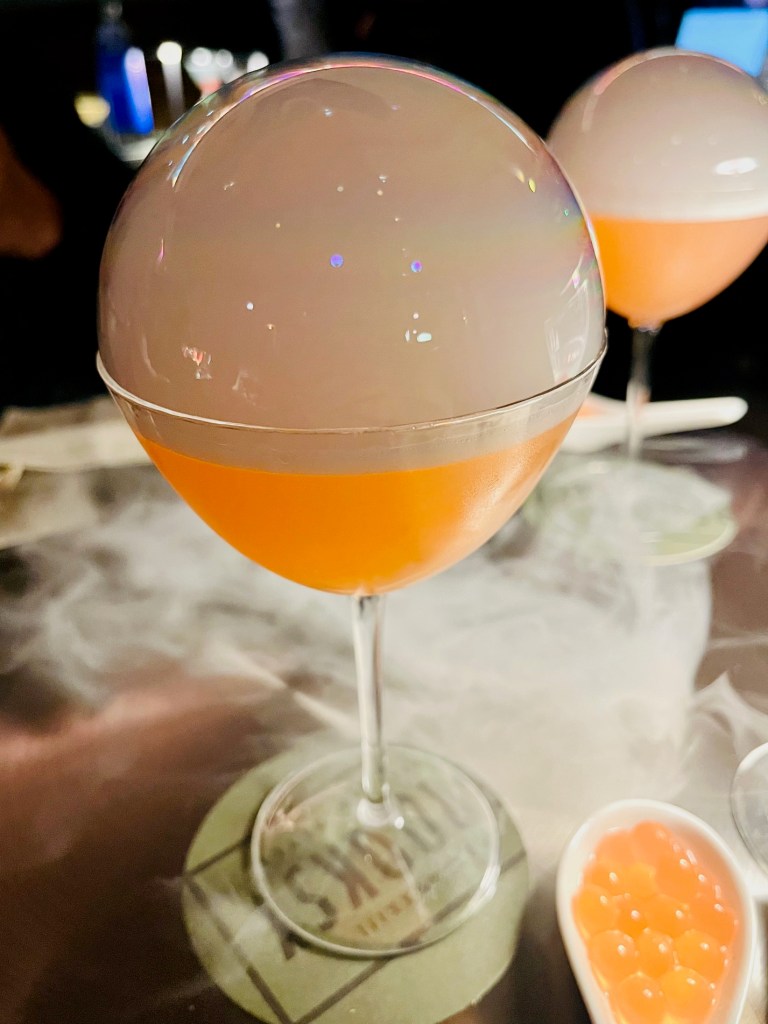 The most Instaworthy one was the TAISHŌ – Yuzu sake, gin, strawberry, calpico and miso. It was very theatrical with its bubble and smoke.