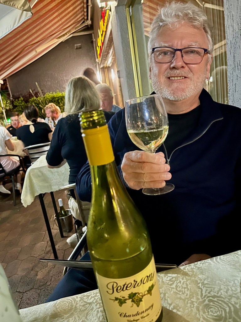 Well, I did dine al fresco on Friday night with DD at a casual Vietnamese place. We took along a BYO bottle of one of our favourite wines, Peterson’s Chardonnay. Yum!