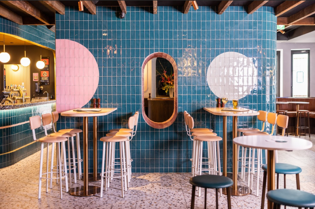 The venue was previously called Hampton Court Hotel and has relaunched following an extensive renovation by Watering Hole Hotels hospitality group. It apparently had a bit of a medieval vibe to it before the reno, but is now decked out in handmade pink and green Spanish tiles, Fibonacci stone bar tables and plush velvet seating.