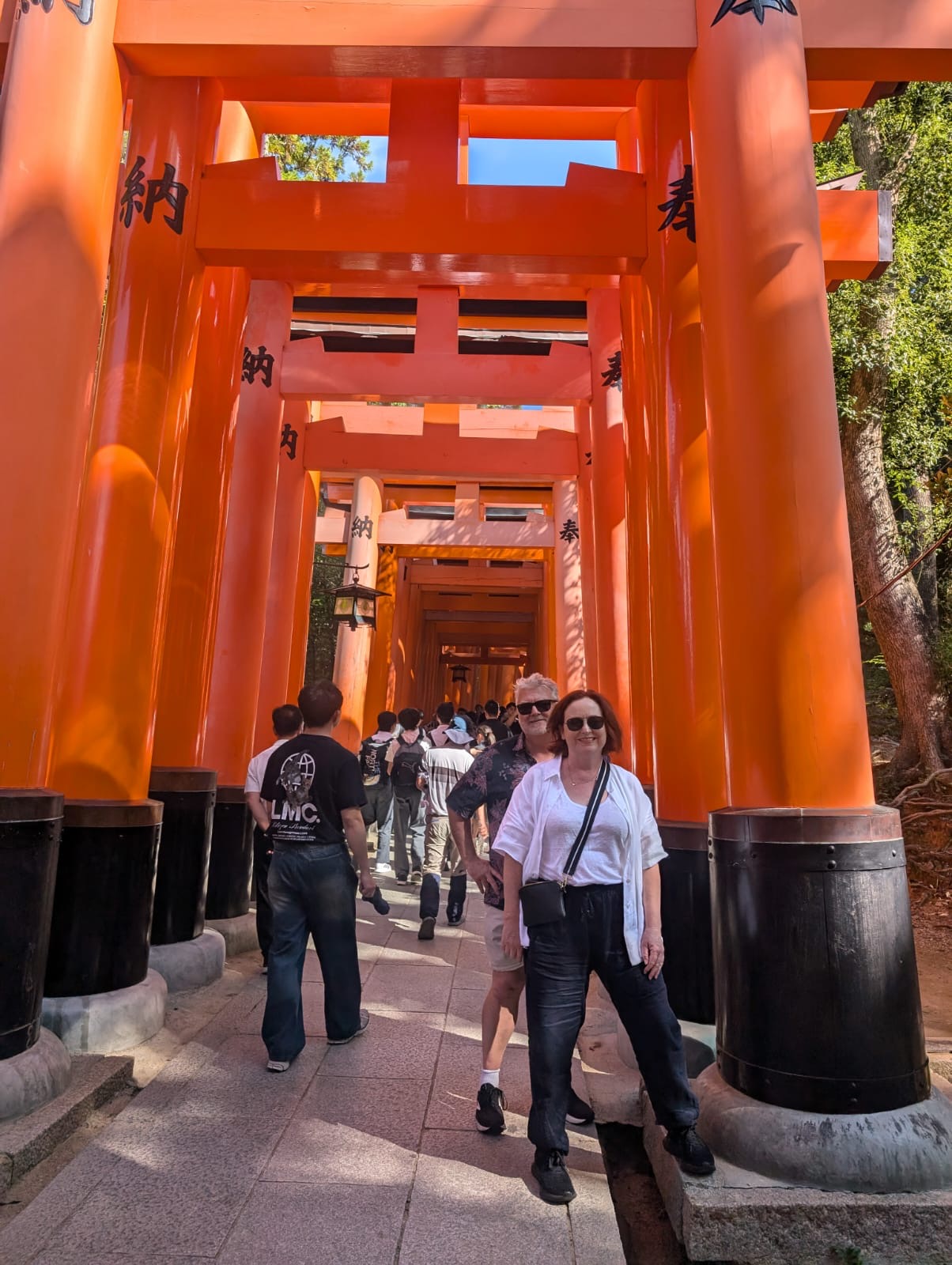 We hit the ground running on arrival in Kyoto, dropping our bags at the hotel and returning to the enormous station to catch a train to the famed Fushimi Inari Shrine. The Shinto shrine is famous for its thousands of torii gates on trails along the forested hillside.