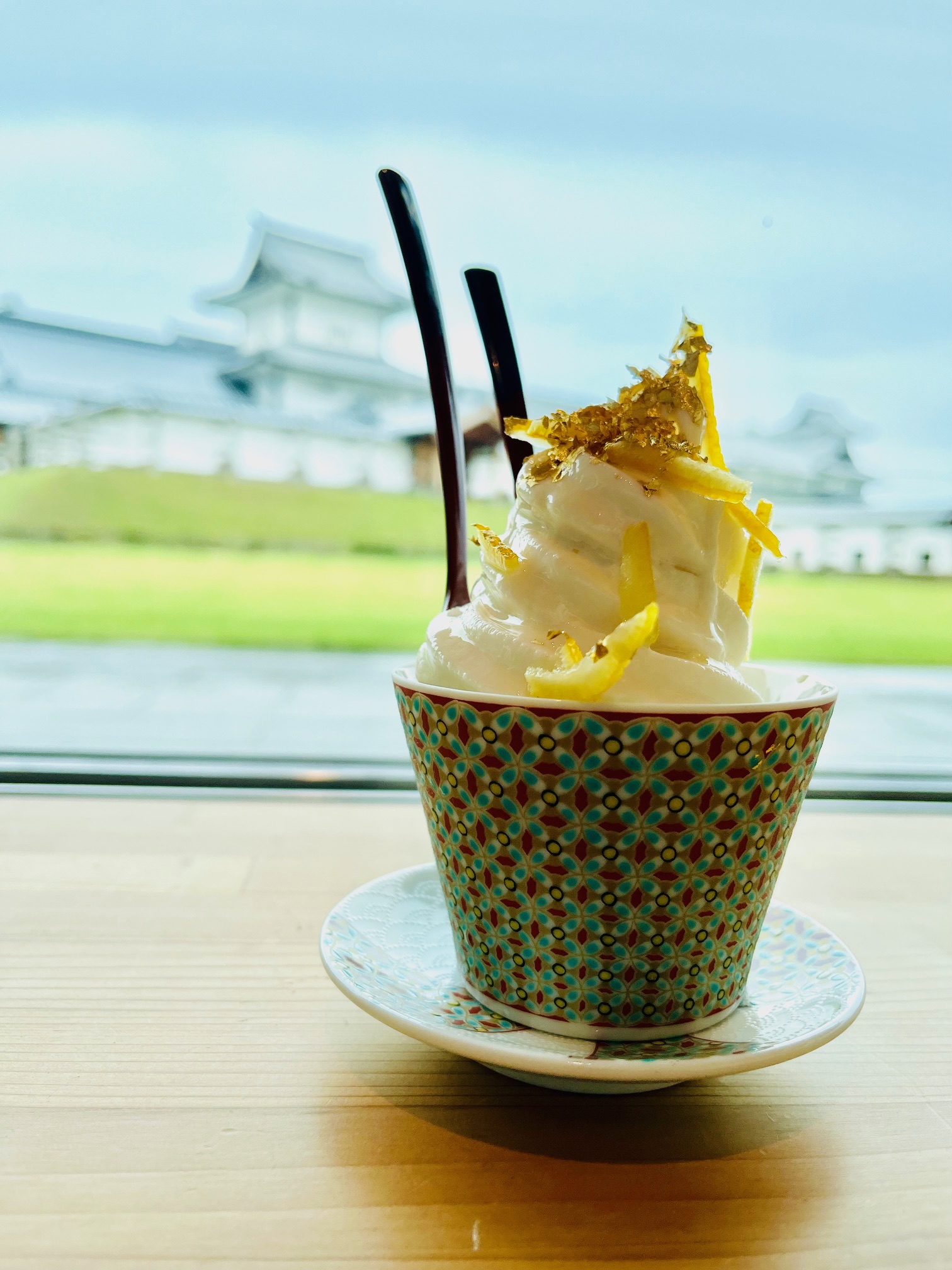 The buildings feature lead clad roof tiles that have turned silver, which gives them a very regal appearance. We wandered the grounds and toured the armoury before heading to the cafe to admire the castle while eating soft serve ice creams with gold leaf and yuzu sprinkled on top. So pretty!