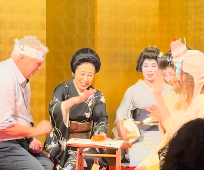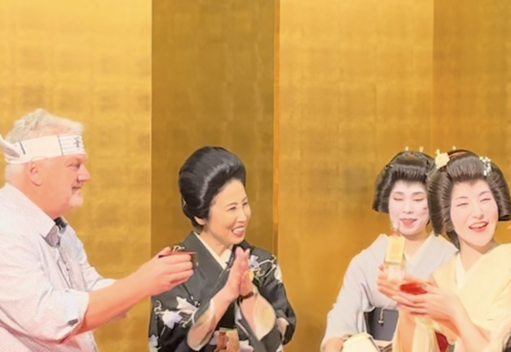 He was very reluctant to take part and refused several times before giving in, but upon reflection, what a moment! Not many people can say they’ve played a drinking game with geishas, can they?