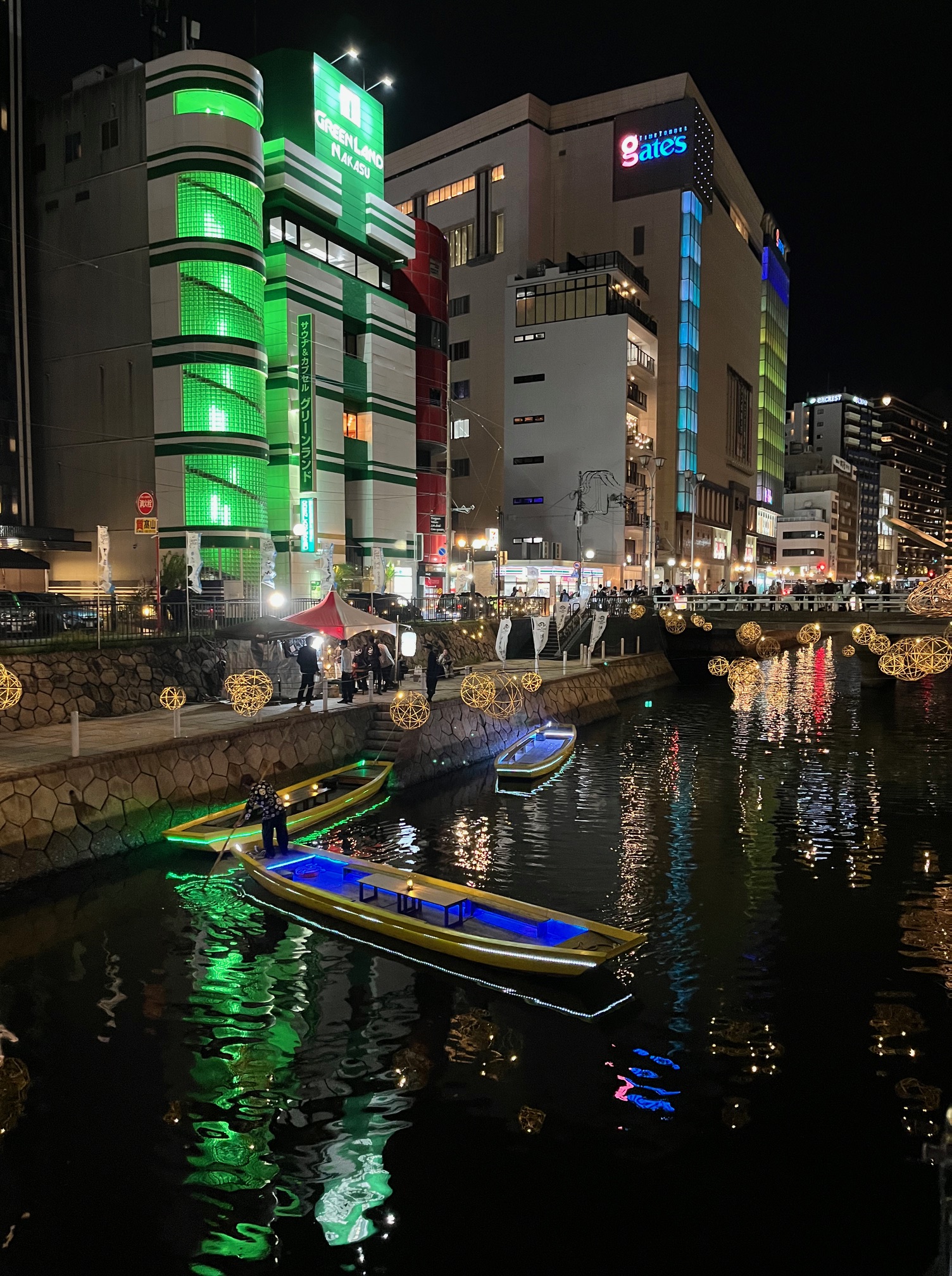 We were also lucky enough to be in town for the Hakata Old Town Festival, which featured entertainment, pretty bamboo lights and a food and drink stall along one of the canals.