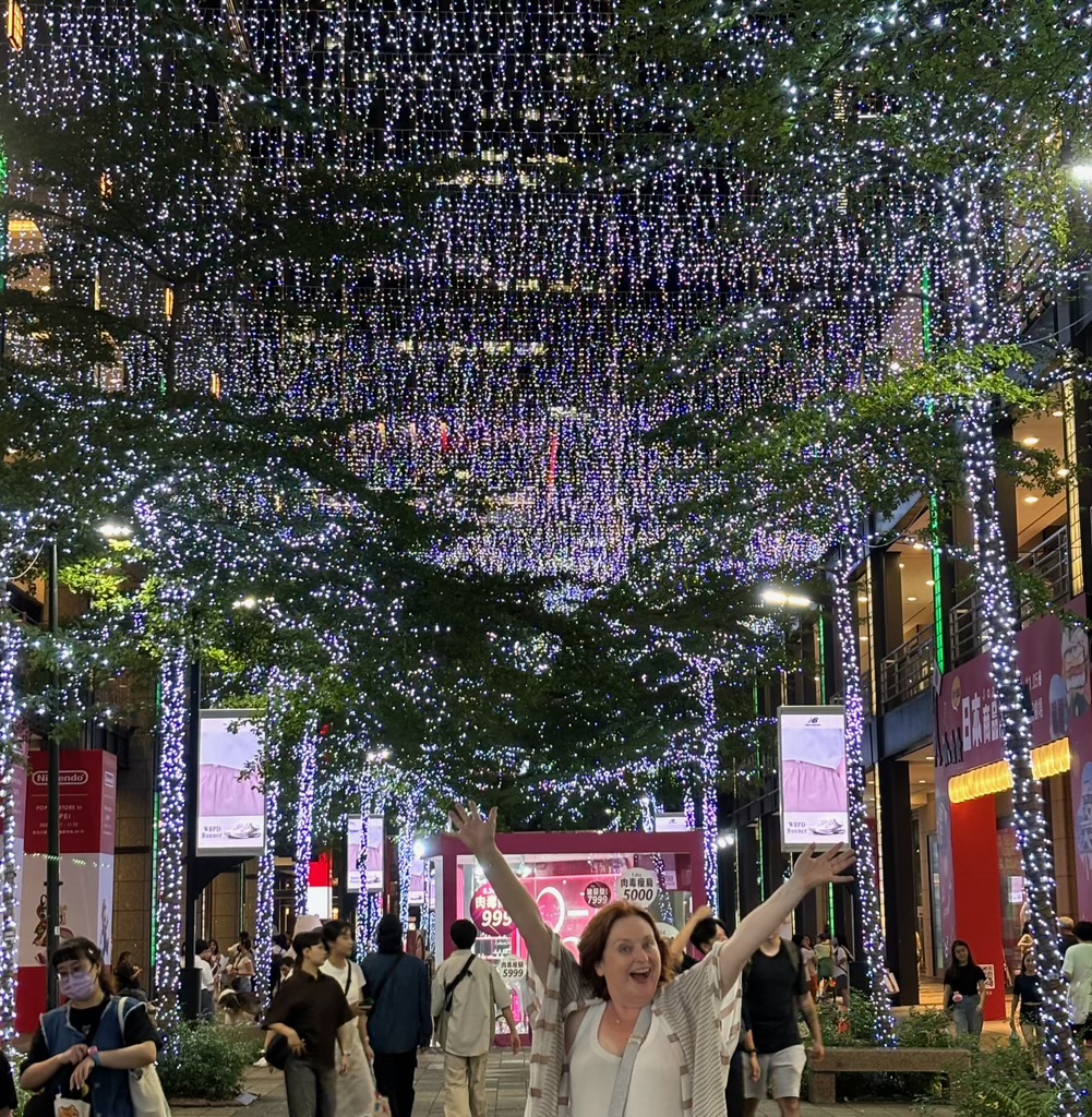 Then we wandered through the modern outdoor malls nearby, festooned with hundreds of thousands of fairylights, gawping at groups of girls performing in a dance competition before heading to the Humble Hotel for cocktails with a view of the 101 and the clouds swirling past it.