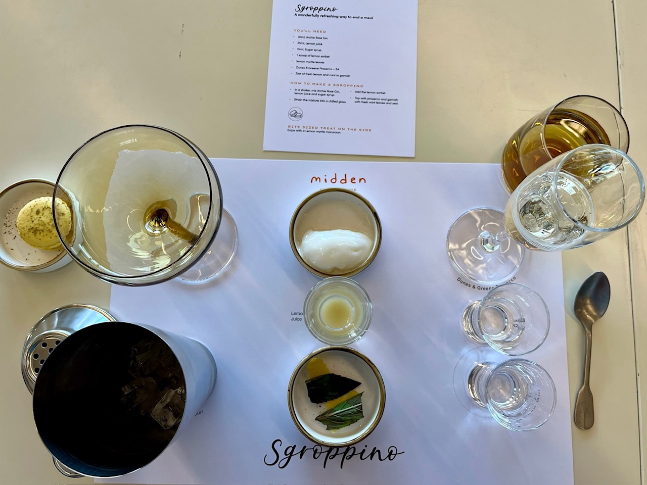 Afterwards we were given a tour of one of the theatres, then we were taken up a private staircase to the venue’s boardroom to make Sgroppino, an Italian cocktail containing lemon sorbet, Prosecco and usually vodka, but we substituted Archie Rose Gin.