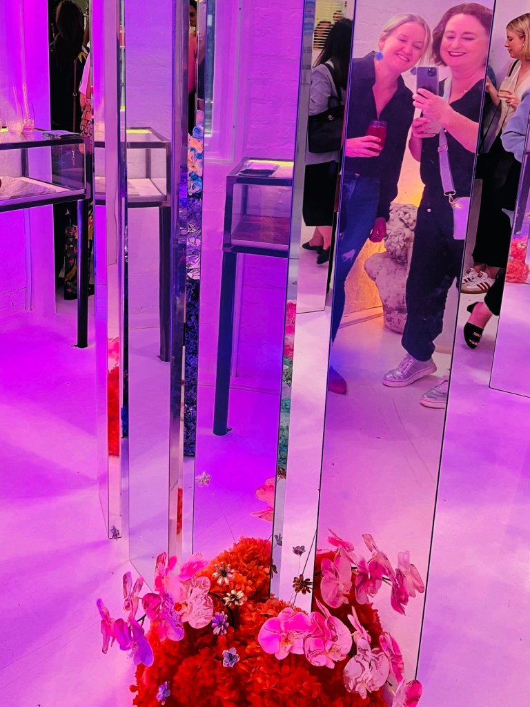 The gallery was filled with striking floral displays and an installation using mirrors and iridescent surfaces that delighted all the influencers in attendance.