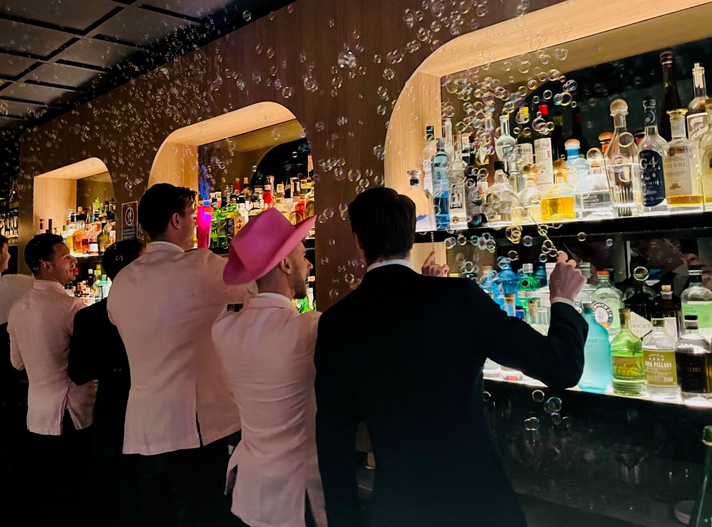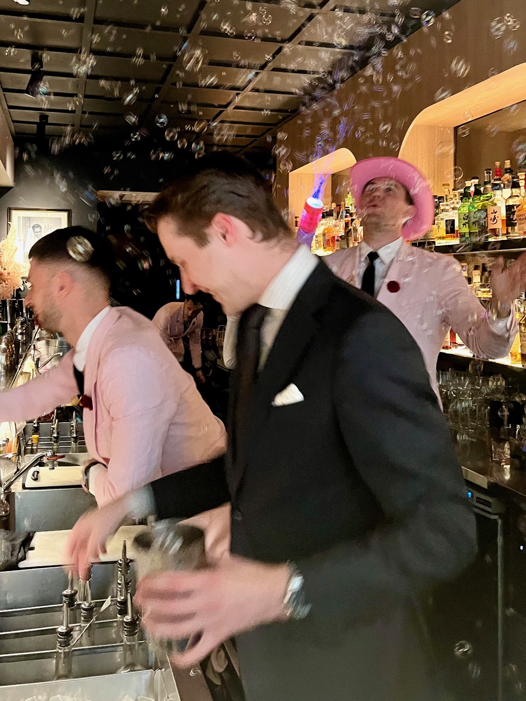 Meanwhile the bartenders donned various crazy hats, blew bubbles, cheered when friends walked into the bar, climbed onto the back bar to pour drinks from great heights and generally had the time of their lives while ensuring the patrons did too.