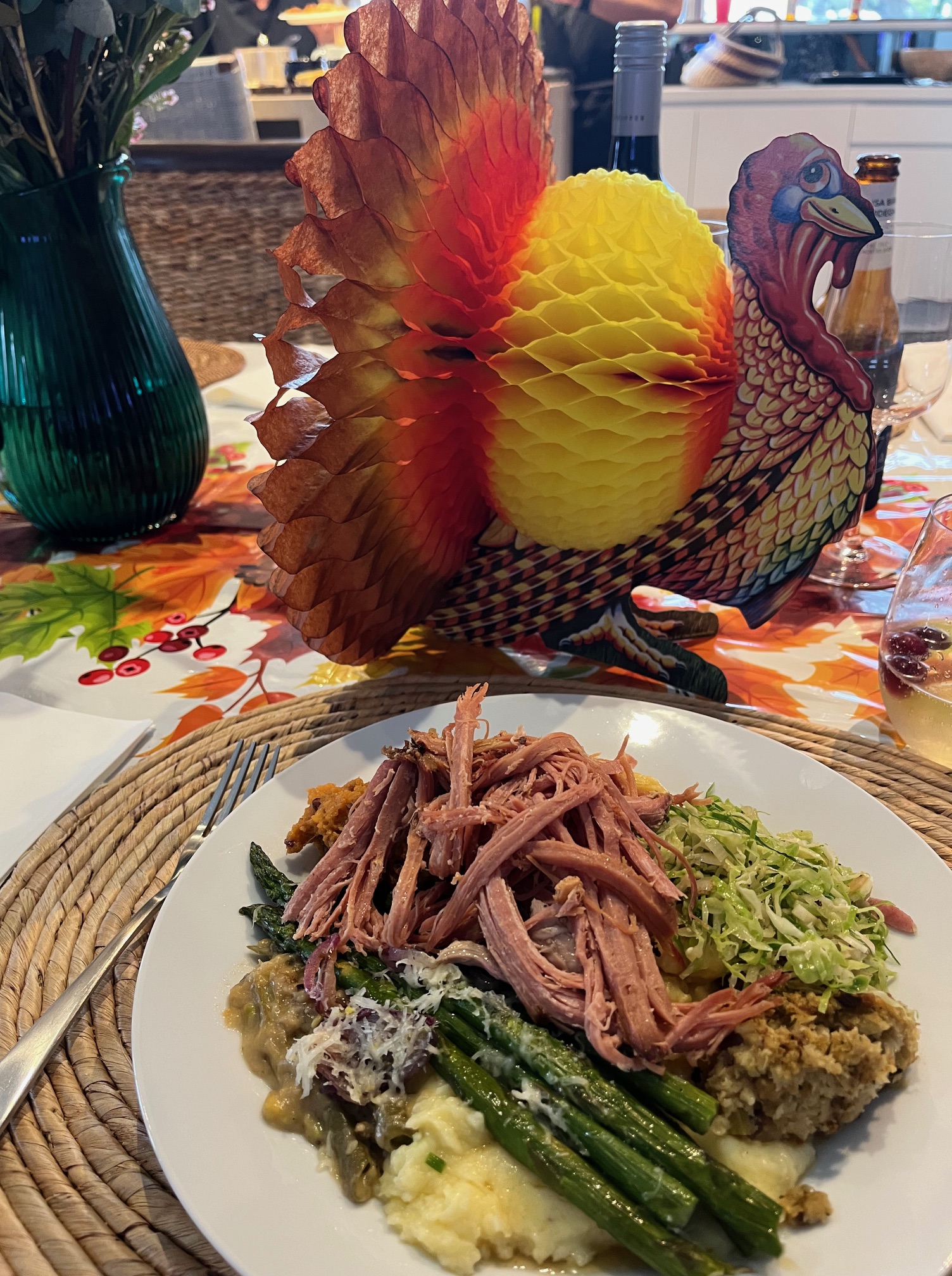 The food was incredible: turkey, pulled ham, mashed potato, mac and cheese, creamed beans, mashed pumpkin with pecan topping, mashed sweet potato with marshmallow topping, shredded brussel sprout salad with bacon, roast asparagus … etc. And then there was dessert table. It was epic.