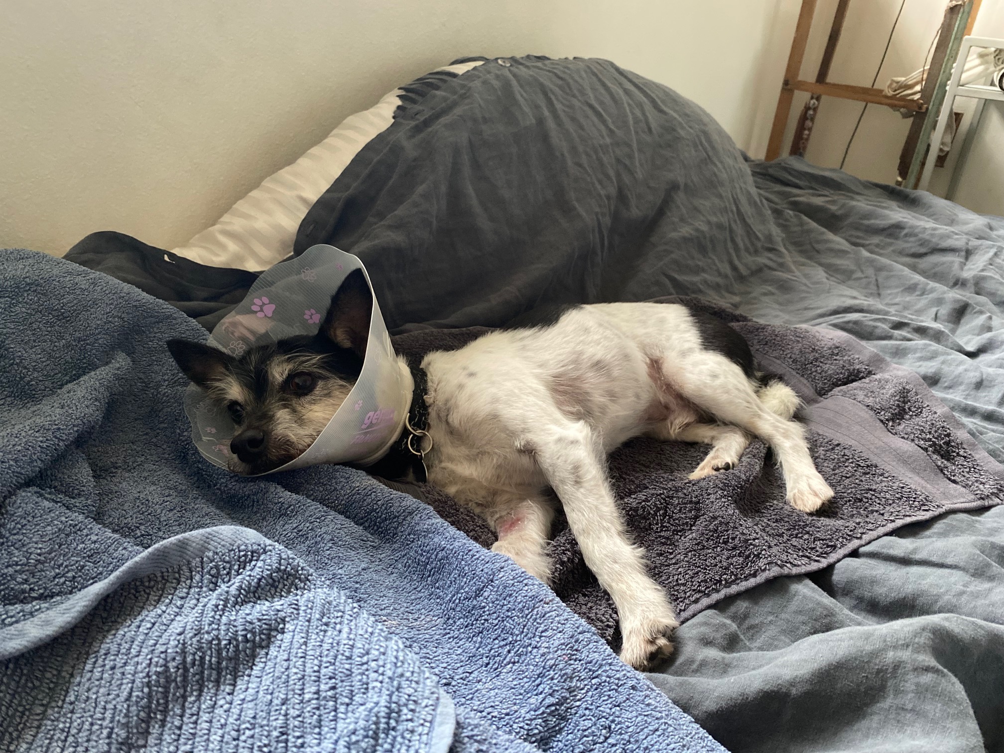 As we were finally boarding the plane the eldest texted to say the OTHER dog was now unwell, with conjunctivitis and diarrhea.