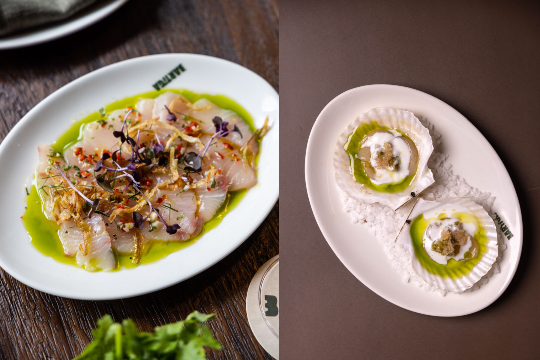 Among the menu highlights were entrees of Oysters with Salmon Roe, Tuna Tostada with Szechuan salsa, macha, chipotle aioli, avocado and crispy eschalots; Lightly Torched Scallops with buttermilk, yuzu kosho and truffle oil; Kingfish Crudo with nam jim dressing, crispy shallot and coriander; and Prawn Toast Sando with lemon and chilli sauce.