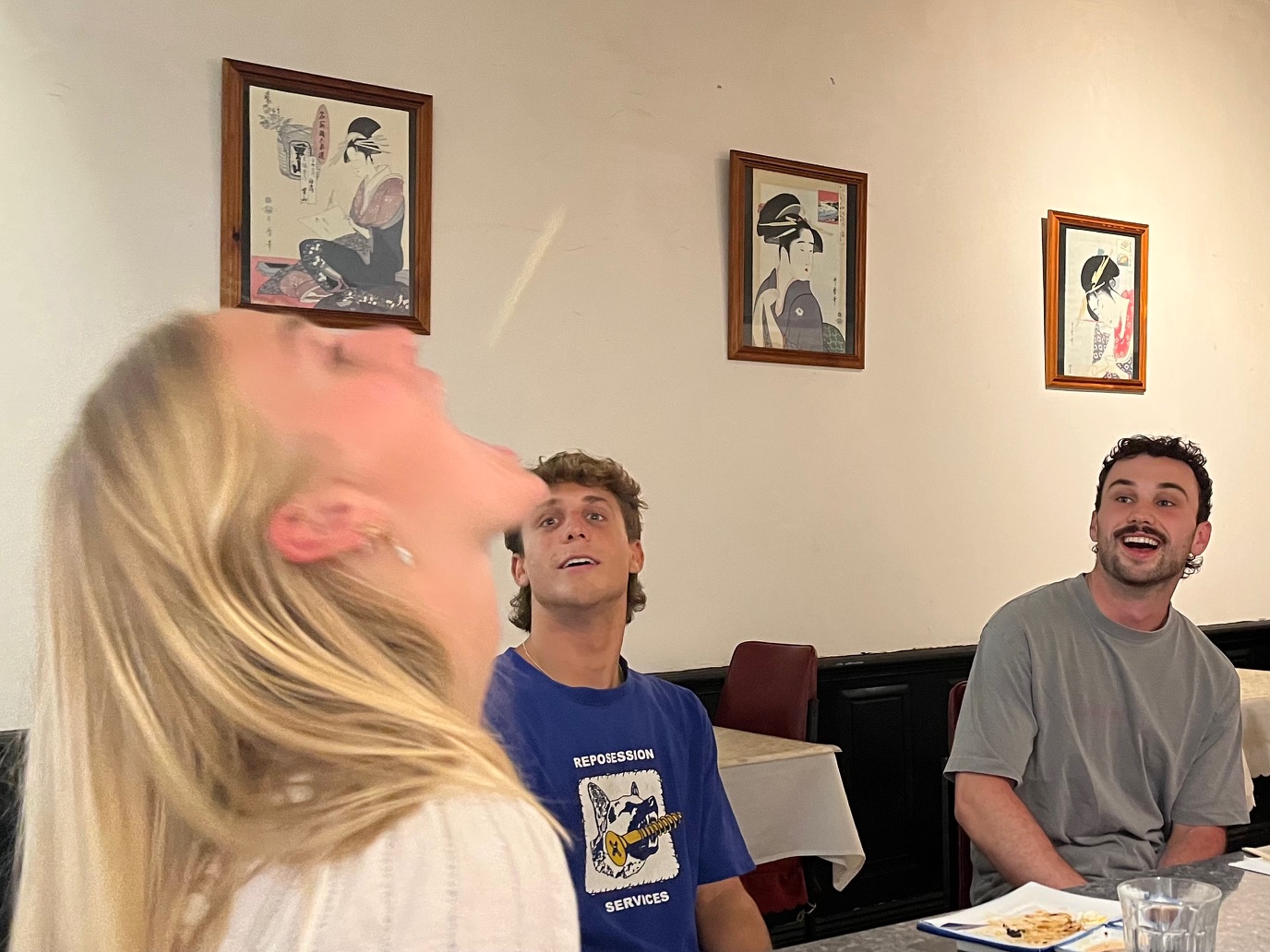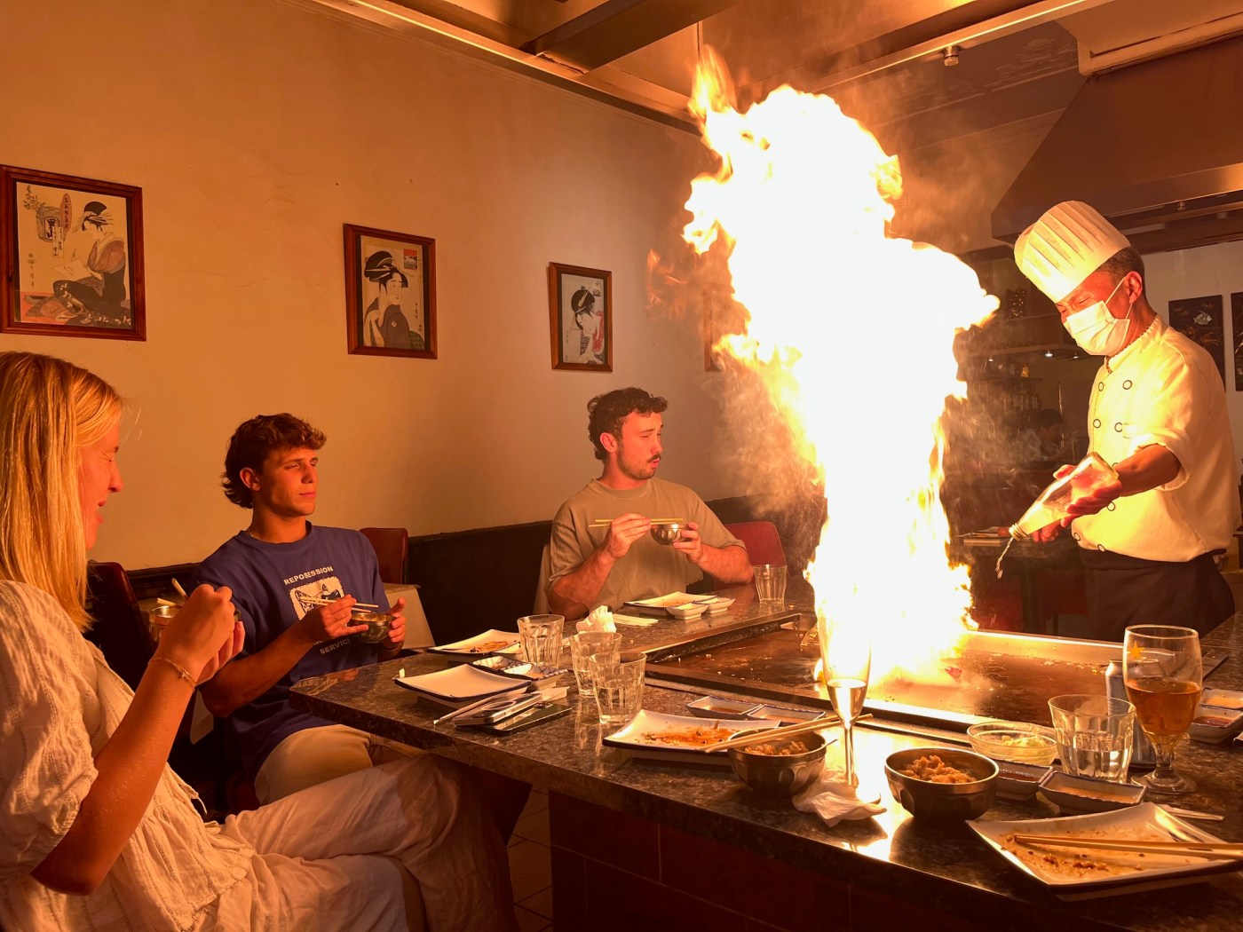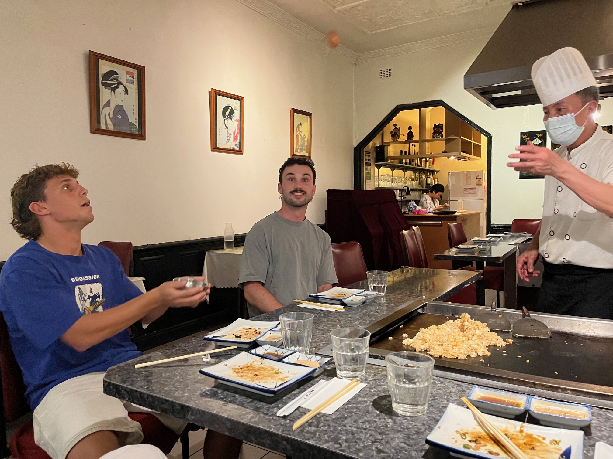 It was Josh’s first-ever teppanyaki experience, which included being showered with fried rice from a bowl tossed at him by the chef.
