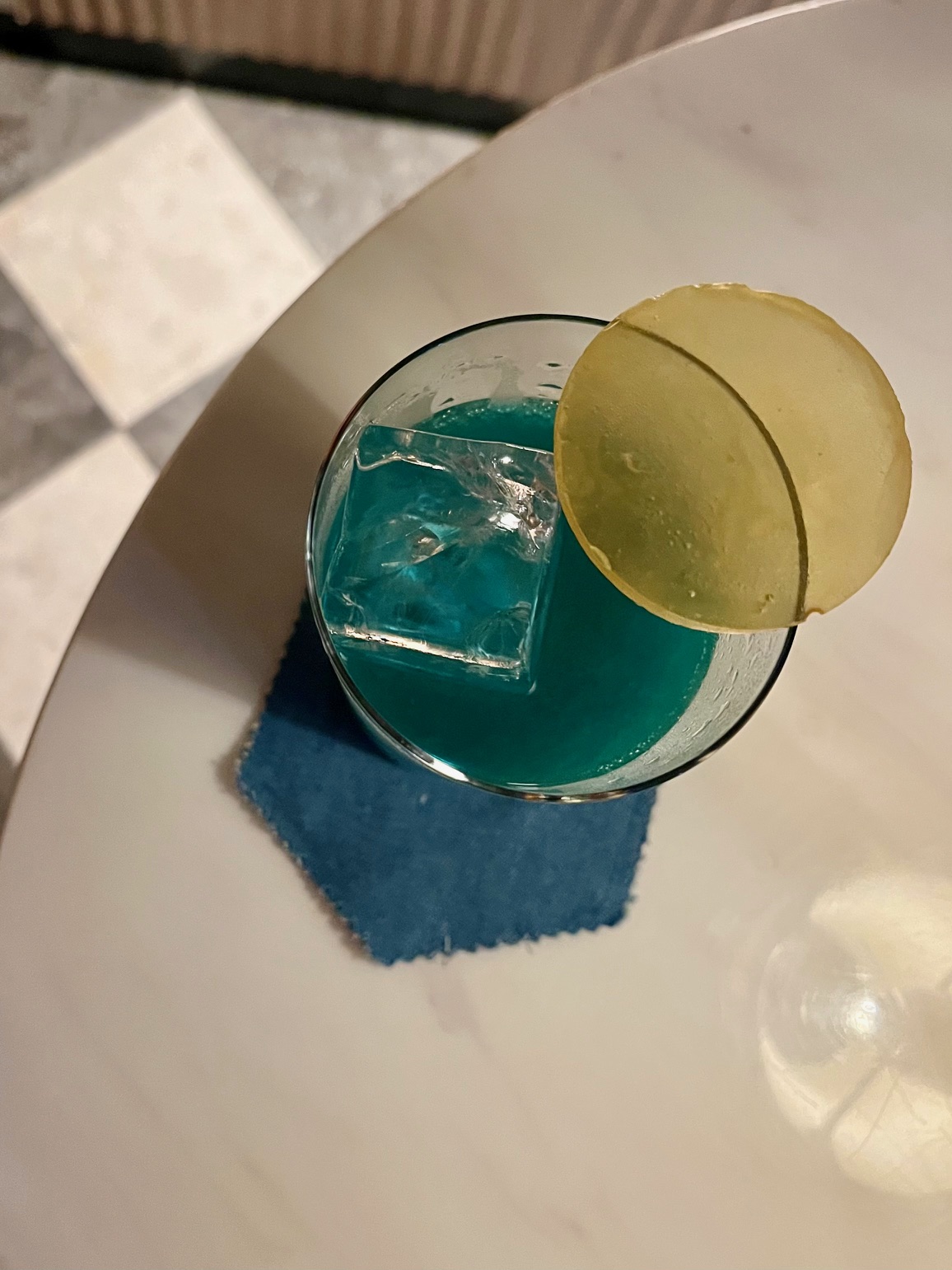 The cocktails at Tailor Bar are inspired by fabrics because of historic connections, as it was once a tailor’s shop or a fabric storage room or something … I can’t quite remember and I don’t have the press release yet. Claudia had the Denim and I had the Corduroy. As you do.