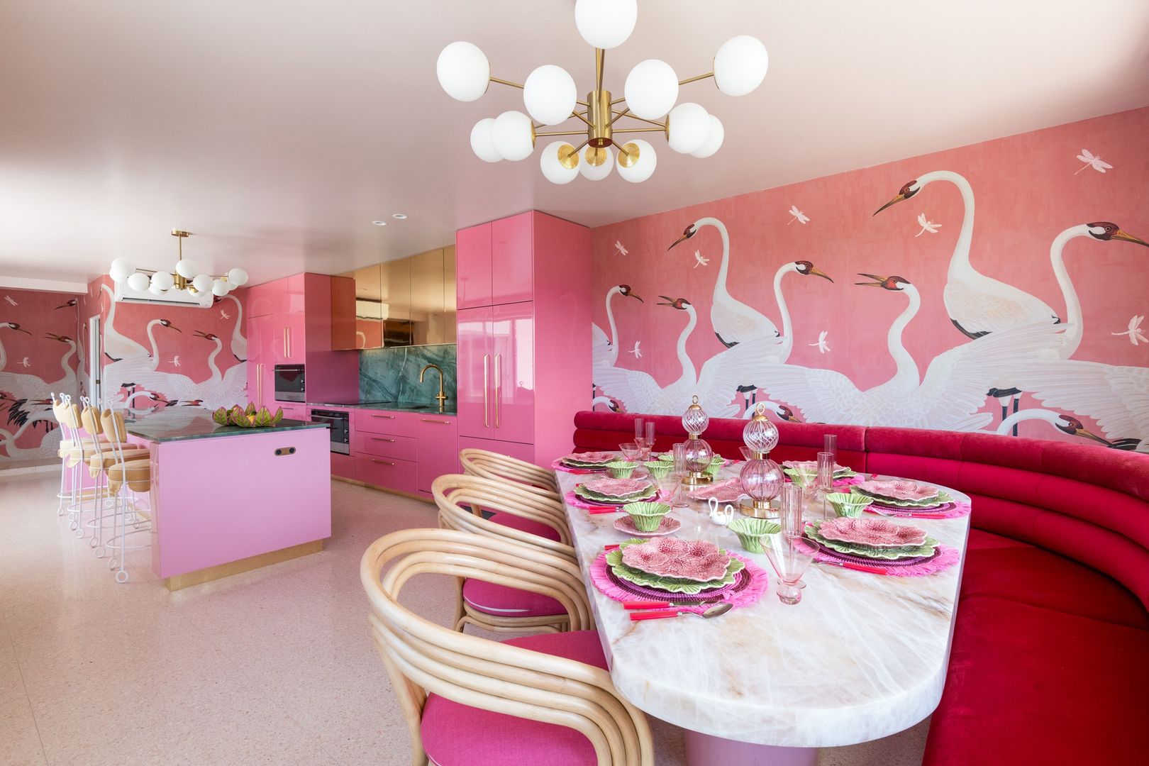 Admittedly they’ve gone a bit rogue with all the crazy wallpaper, green carpet and hot pink kitchen, but those things can be fixed … generally I adore it.