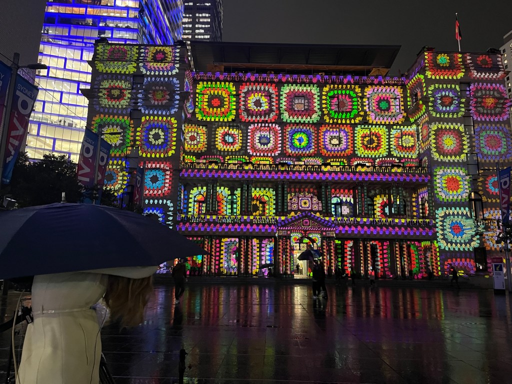 And I took DD to see Romance Was Born’s crochet and iced Volvo filled Customs House installation, which is one of my favourite building projections.