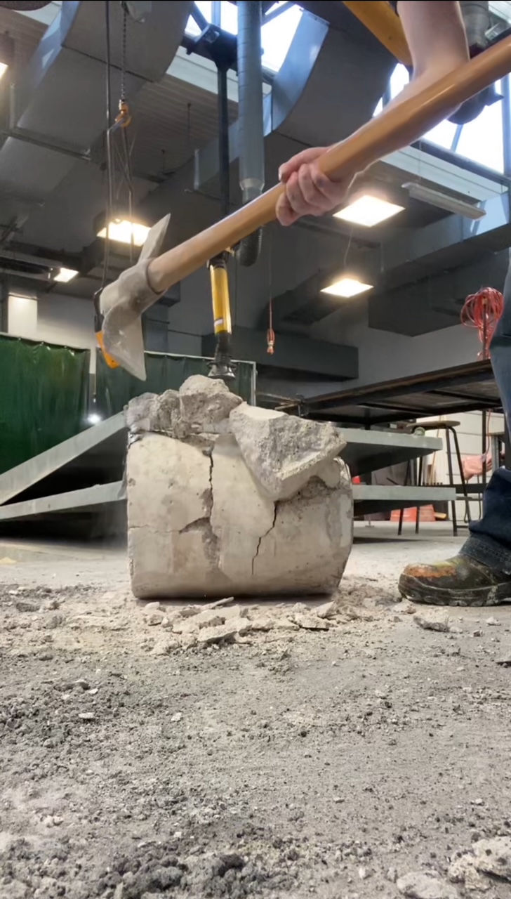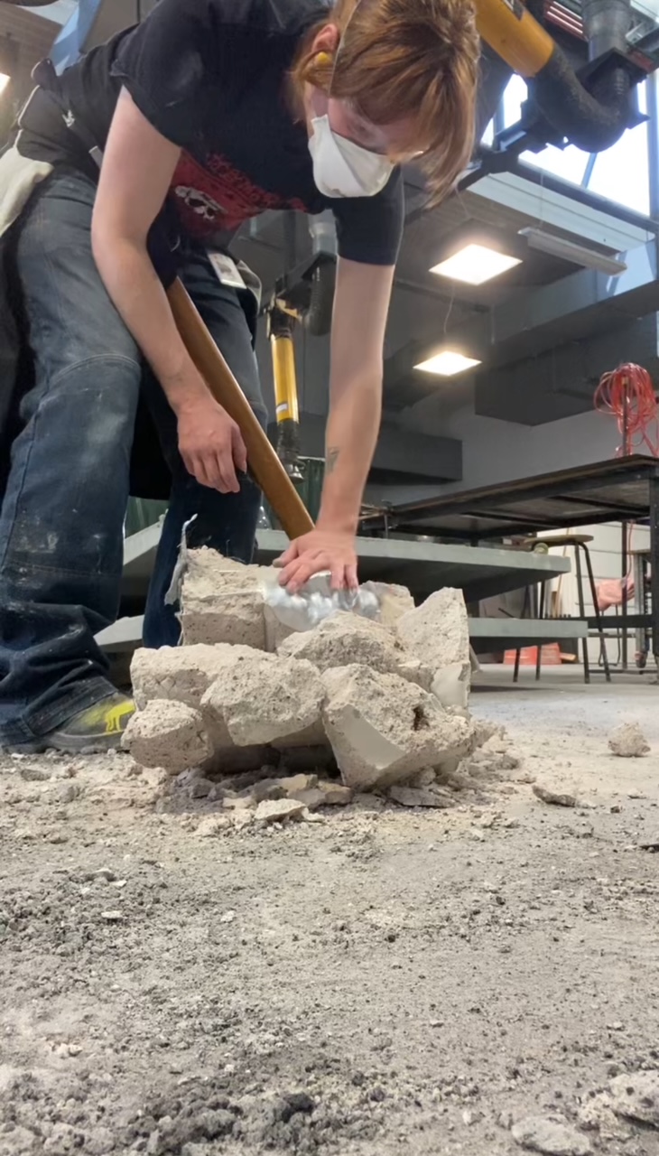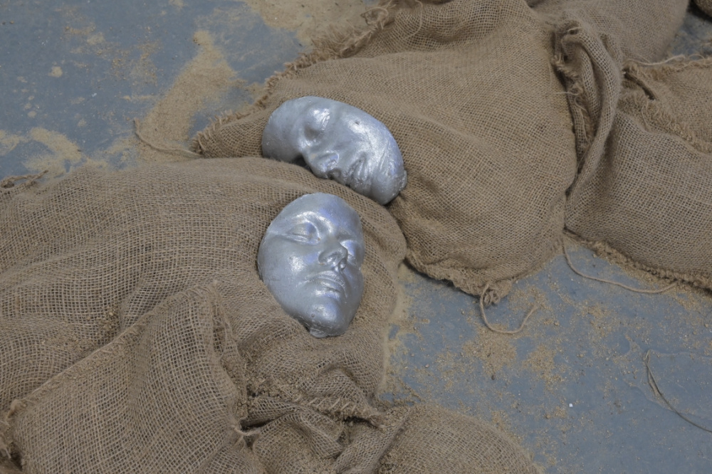 He also sent me a pic of his latest artwork, which features faces that have been cast from aluminium. I also received a fascinating video of the faces being pickaxed out of their casting materials. Here are a couple of screenshots and a close-up of the finished work.