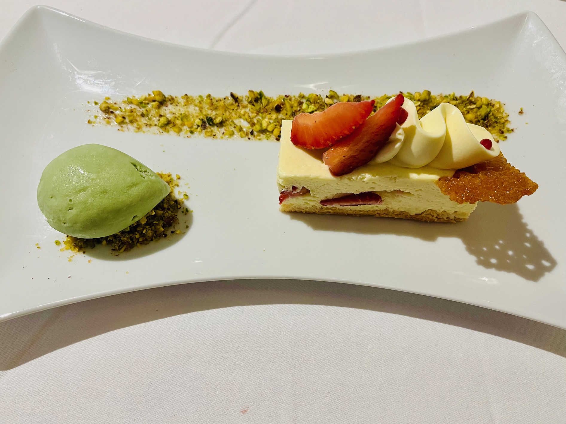 Then we dolled up for poolside drinks with the Captain, followed by a gala dinner. This was my dessert …