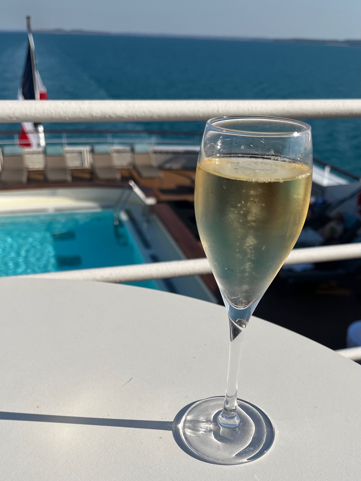 Then it was back to the ship to gaze out to sea for a while with a glass of French bubbles in hand.