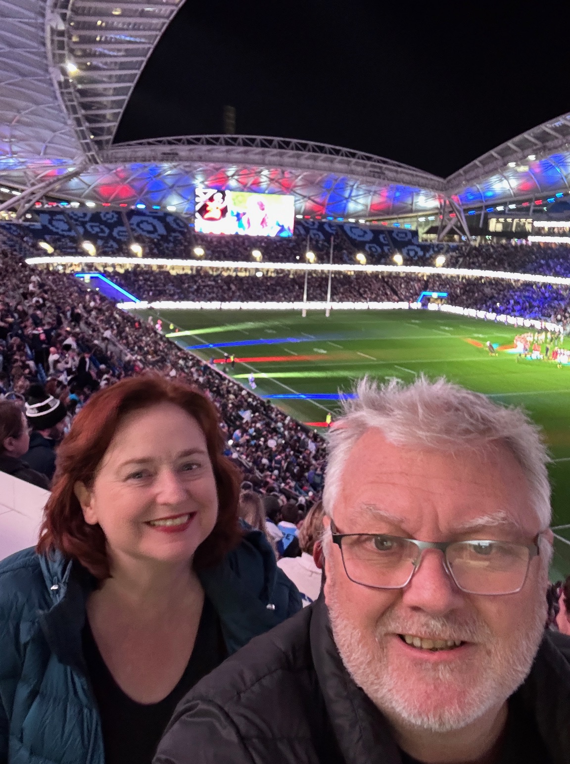 This was accidental. I was offered free tickets to the Roosters versus the Bulldogs match on Friday night and got excited about treating DD to watching his favourite team play at Allianz Stadium.