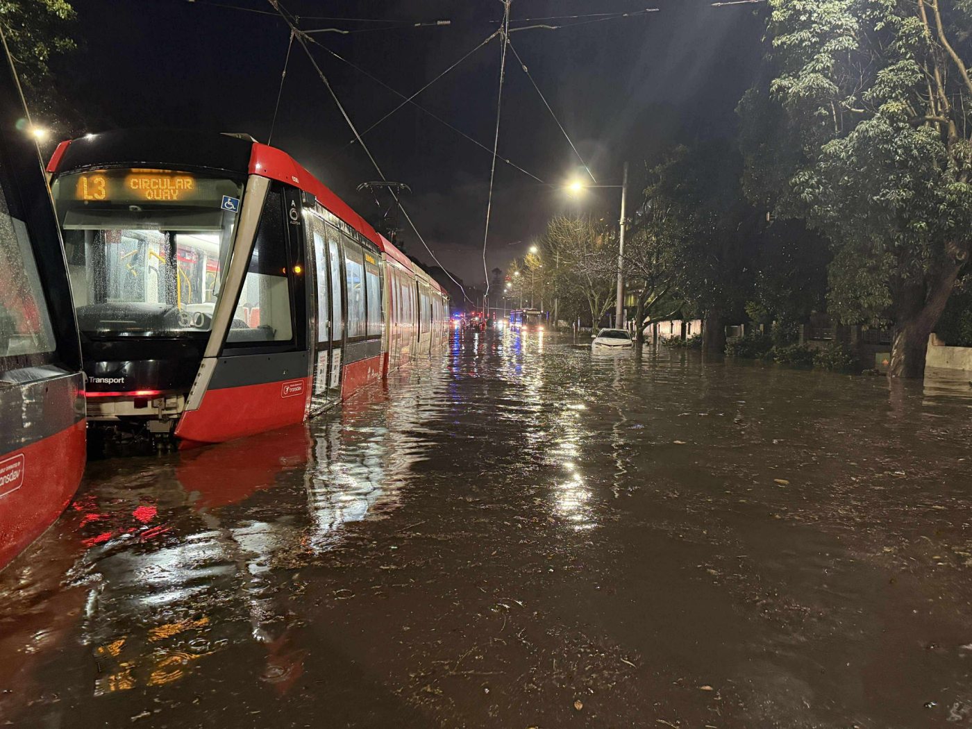 Heaps of vehicles were caught in flash flooding, including a light rail vehicle stuck on Anzac Parade.