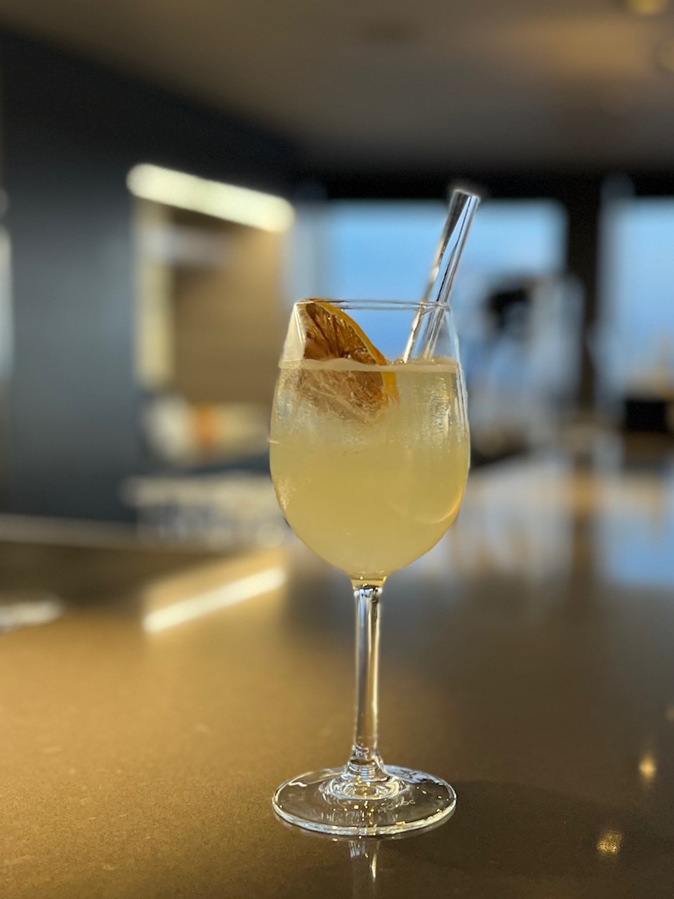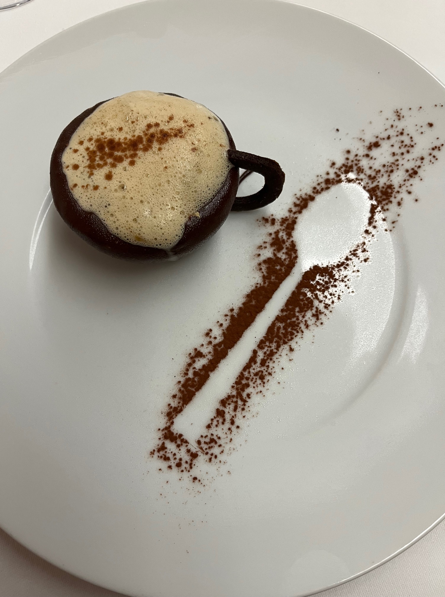 A French 75 cocktail followed at sunset, then we enjoyed dinner with a retired doctor couple from Denver (including an amazing coffee-cup-shaped cake for dessert).