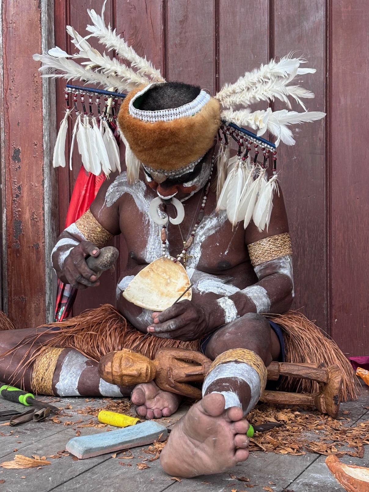 Agats Museum was fascinating, filled with examples of the region’s famed wood carvings. A trio of talented locals sat outside, producing artworks for the museum’s shop.