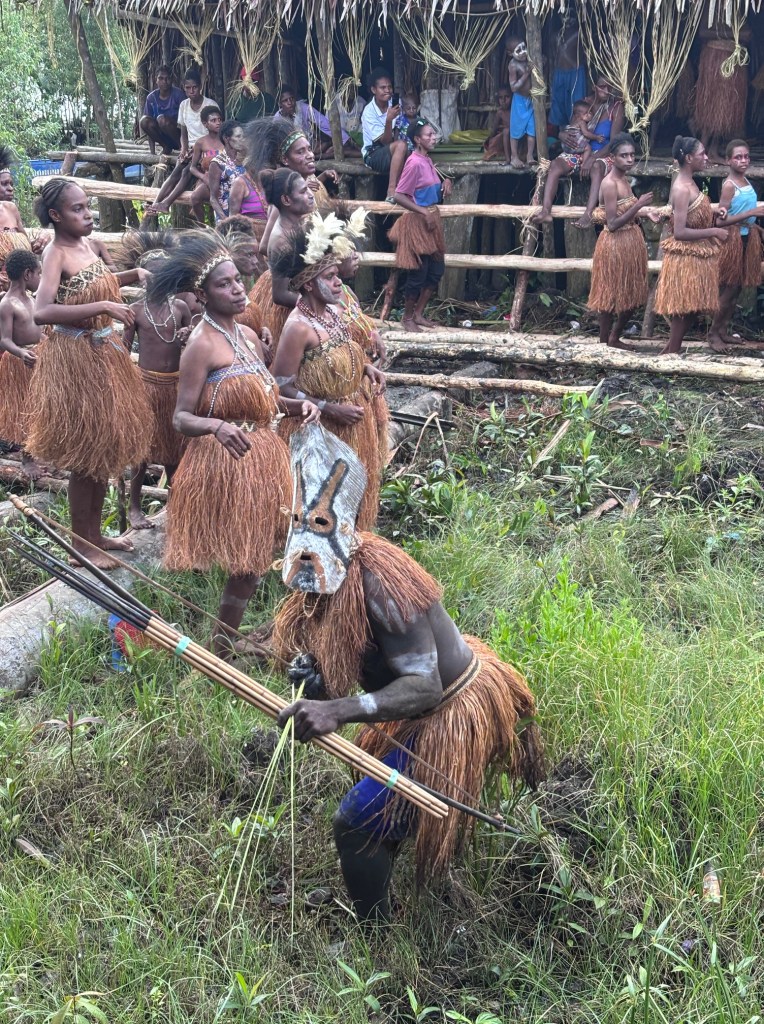 The women and children danced and sang, while a lone warrior darted through the crowds in a mask, wielding a bow and arrow.