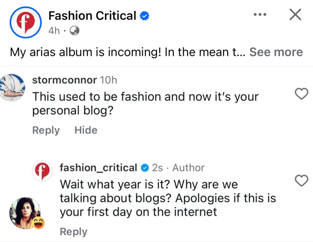 In other news, I was shocked to see this post in my Facebook feed from Fashion Critical: