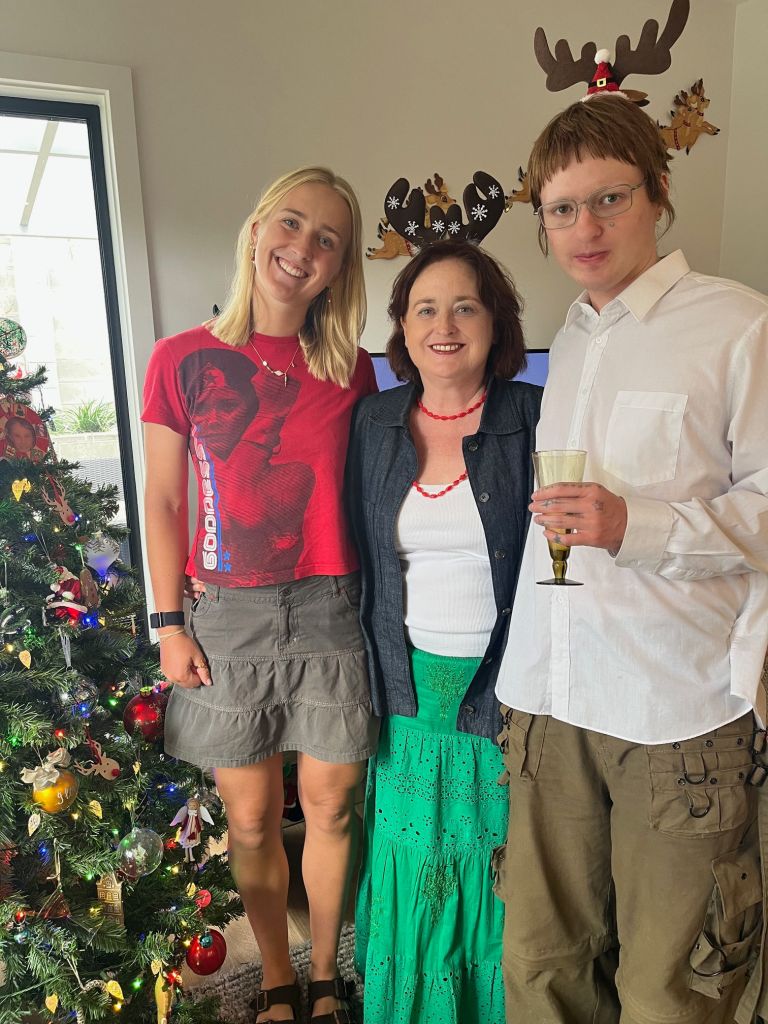 Then we arrived at my sister’s place. Christmas is my sister’s favourite time of year – so I gave her swimmers with candy canes on them as her gift, as I figured she needed a Christmas cossie for her festive repertoire.