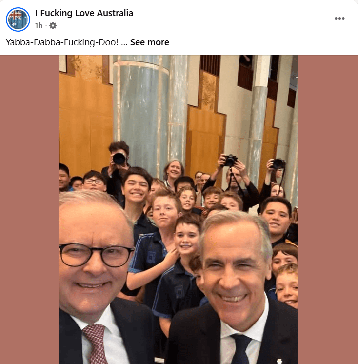 He said, among other things: “So yeah. Mark Carney came to Australia, stood in our Parliament, and basically said… you and me, mate. You, me, New Zealand, the UK, Europe, Japan, South Korea. We’ve got more people, more resources, more money, and more legitimacy than the bloke trying to shake us down. Let’s act like it.